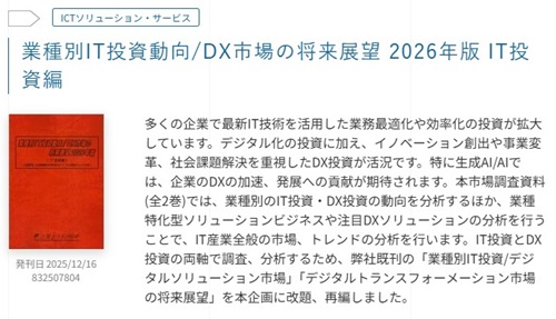 富士キメラ総研様の「業種別IT投資動向/DX市場の将来展望 2026年版」に「参謀くん」を掲載いただきました